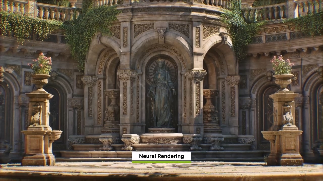 黄仁勋认为,英伟达随后在光线追踪技术上的大胆押注同样意义深远。由于光追计算成本极高,单纯依赖原始算力已无法满足需求,英伟达顺势推出了 RTX 架构以及 DLSS 等图像超分技术。DLSS 利用神经渲染技术,成功将生成式能力引入了计算机图形学领域。