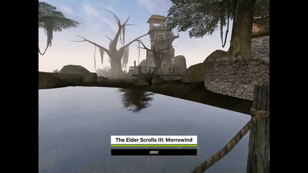 英伟达为打破这一僵局,在 GeForce 3 上引入了可编程顶点与像素着色器架构。这项技术赋予了开发者极大的控制权,让他们能够将艺术表现力注入每一款游戏中。IT之家附上相关游戏画面演进如下: