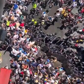 4月9日当天,抗议的人群从各个街区涌出来,往总统府米拉弗洛雷斯宫的方向走。警察动用了催泪弹、胡椒喷雾,好几轮驱赶都压不住人群的势头。